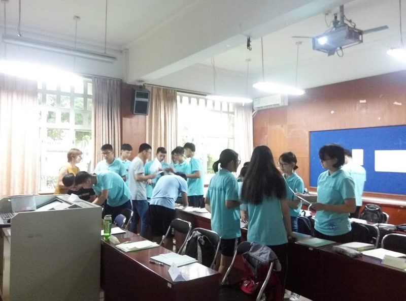 本网讯 今天是夏令营正式上课的第一天,所有学生都在老师的组织下参加了开营典礼。高中进阶班的学员们认真积极参与了典礼,之后便回到教室上课,和老师们第一次见面。下午的班级活动同学们有的选择棋类,还有男孩子到了室外打篮球和羽毛球。