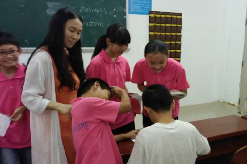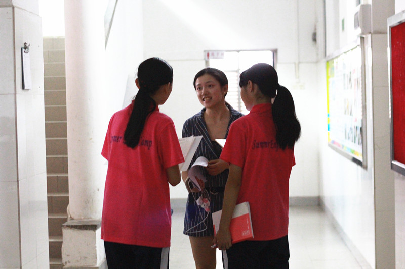 2017年7月25日,初高班的学员在课上分为三组开始就导师指定话题进行思考讨论。导师引导学员们积极合作,为之后的group presentation(小组展示)做准备,通过采访朋友、导师、家长、陌生人等的方式尝试收集信息、积累素材。在设计问卷做采访的过程中,学员们得以了解掌握用科学的调研方法来分析问题、思考问题。