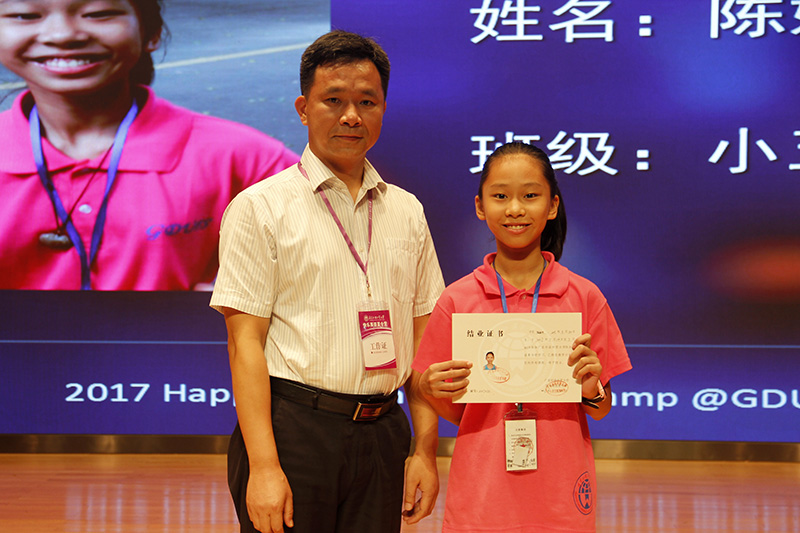 彭陟宣读了关于表彰2017快乐英语夏令营优秀学员、优秀班干部和优秀通讯员等的决定。随后,任跃忠为学员颁发结业证书并合影留念。