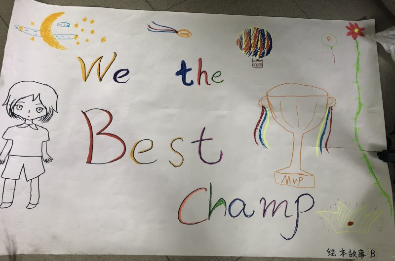 我们班的口号是“we the best champ!”,意思是我们是最好的冠军,希望我们可以通过12天的努力,每个人都能变得更强。在海报设计过程中,同学们个个都拿出看家本领,帮忙设计、涂色,通过大家的努力,一副精致好看的海报终于诞生了!