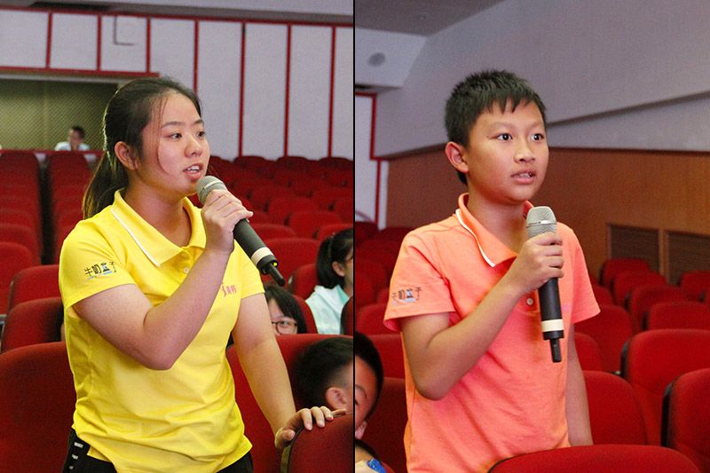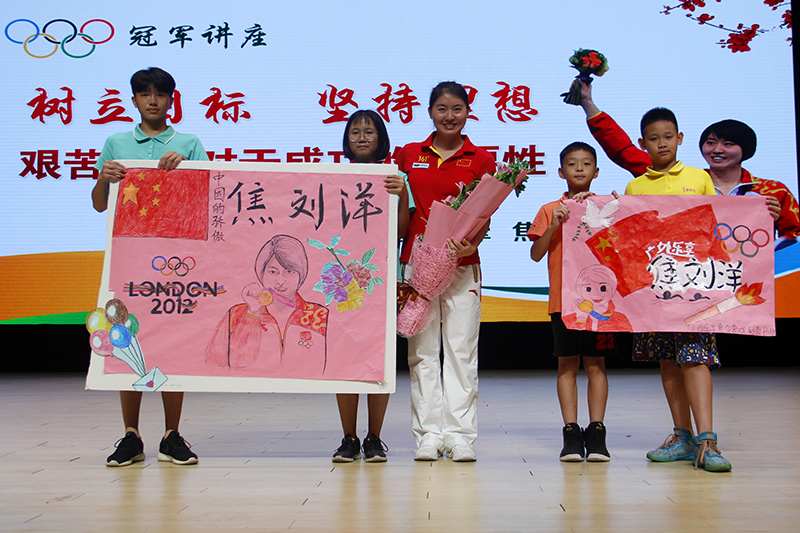在提问环节,学员们提出“如何从北京奥运会的第二名到伦敦奥运会的第一名”、“决赛中是怎样从落后到反超取得冠军的”等问题,焦刘洋一一作出回答,并鼓励学员们在学习中也要给自己设定学习目标,努力实现目标,享受成功时的喜悦,学习跟游泳一样,都是很快乐的事情。