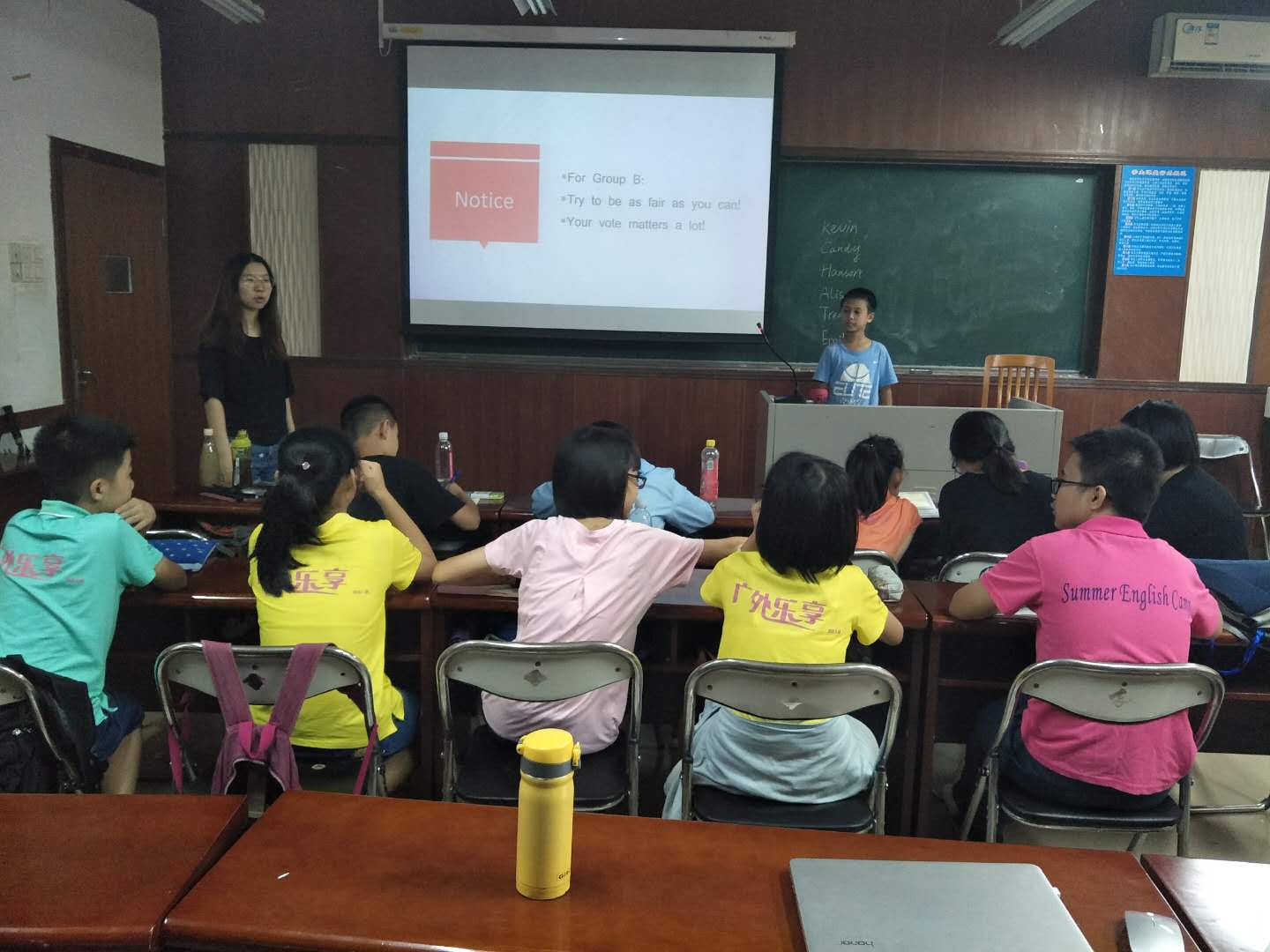 思辨营演讲特训班:英语演讲课上,我们的Ellen老师先是强调了在演讲当中重要的元素都有哪些,其次让学生以身试法,学生分为两组,第一组同学负责台上做演讲,介绍一个自己最想推荐给其他人的地方,第二组同学听完所有演讲之后开始投票,选出自己最想去的地方。通过这个活动,演讲者和投票者都可以切身体会到究竟怎样的演讲才可以吸引人们的注意力。