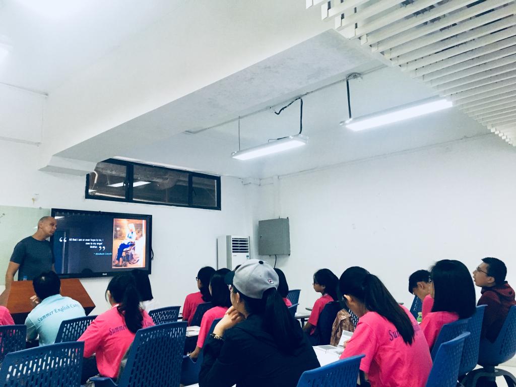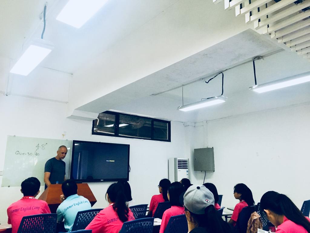 本网讯 2018年7月31日上午,学生们前往课室进行外教课。在外教幽默风趣的带领下,同学们显得格外认真,热衷于与外教进行口语交流。