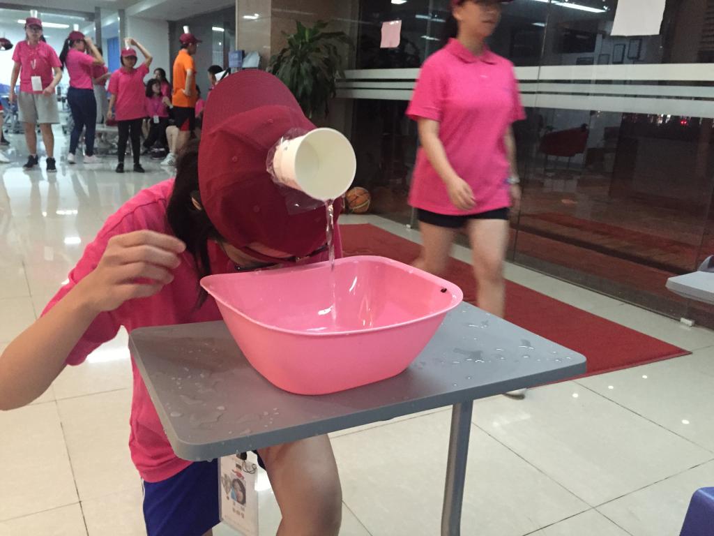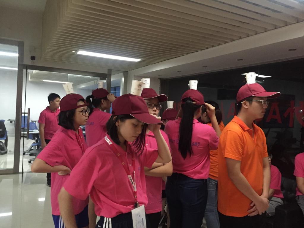 而今晚的压轴游戏是“水杯传水”,同学们在多天的磨合下,队伍之间显得更加的团结和默契。