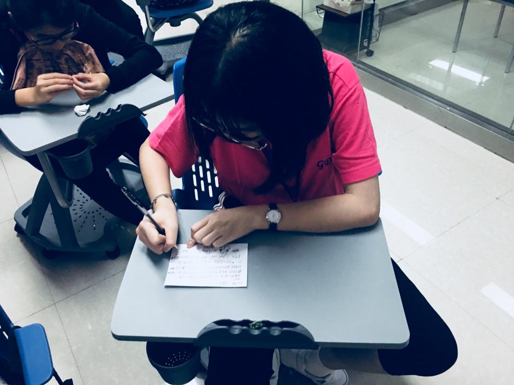 晚餐用餐过后,一排排的路灯瞬间被点亮了。同学们回到课室听着自己的“天使”为自己写的信,感受天使送的温暖,笑逐颜开。欢声笑语过后,又纷纷动起手上的纸和笔,给自己的“天使”写下回信。
