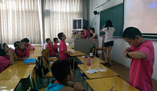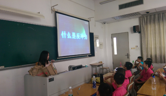 小四班最期待的课是什么呢?有外教口语,有综合英语,但大家最喜欢的,还是由两位亲切姐姐教授的小牛顿课。7月22日的小牛顿课,老师给同学们讲起了反冲力的知识,还带大家做了简单好玩的实验,同学们上课上得不亦乐乎,个个都很积极。