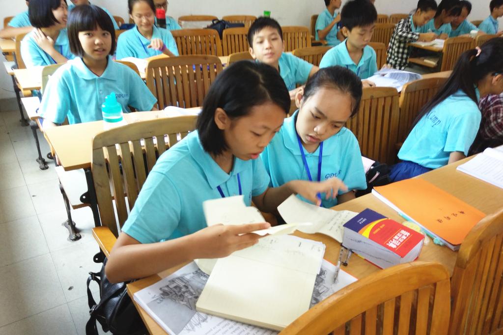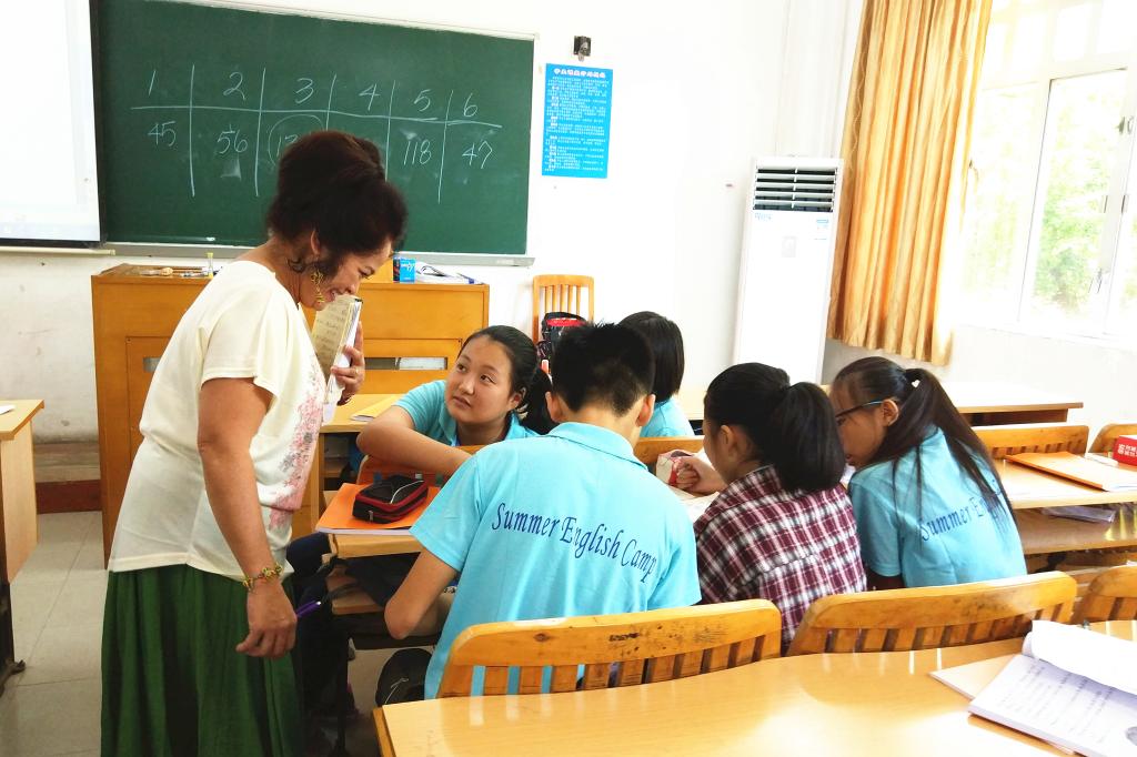本网讯 7月22日早上,走进初二班的交际英语课堂,就会发现同学们坐的位置跟早读不一样了!原来是外教老师Esperanza将全班29名同学分成六个小组,进行熟悉课本的游戏。