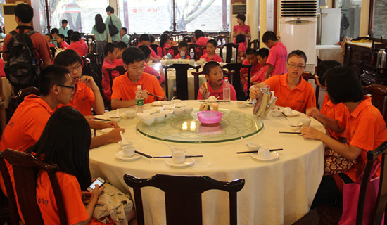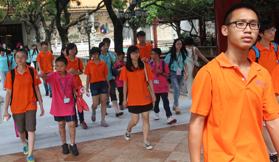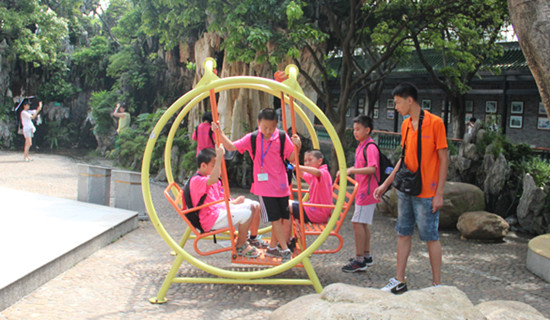 最值得欣慰的是,高中的十二位同学非常团结,也非常善良,经常帮助小学班级的小朋友:跟美国科技实践营的小朋友一起进行拔河比赛;高中班的“宝宝”是小朋友特别喜欢的大哥哥,他们总是会跟小朋友一起走过食堂与课室的必经之路——广外隧道;外出旅游,他们牺牲了很多自己游玩的时间,陪着小朋友们观看湖里的锦鲤、荡秋千,捞鱼......